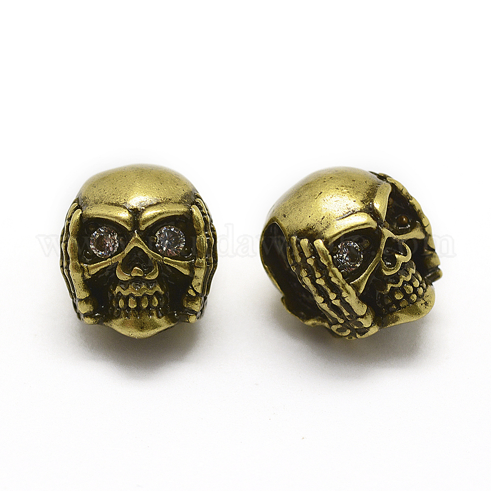 Латунные микро проложить класса AAA кубического циркония бусы, без кадмия, без никеля и без свинца, череп, прозрачные