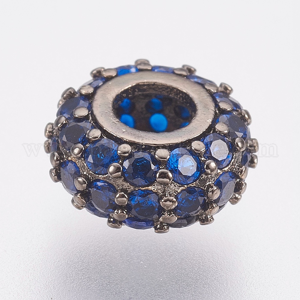 • Черный Цвет Металла Латунные микро проложить кубического циркония бусы, без свинца и без кадмия, рондель, темно-синий, металлический черный , 8x4 мм, отверстие : 3 мм