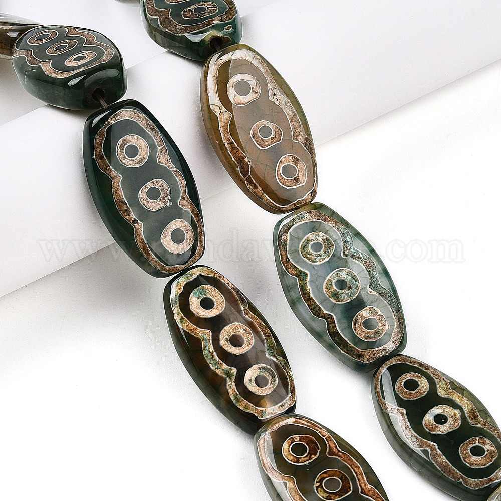 Овальные с 3-глазом нити бусин дзи в тибетском стиле, природных бисера агат, окрашенная и подогревом