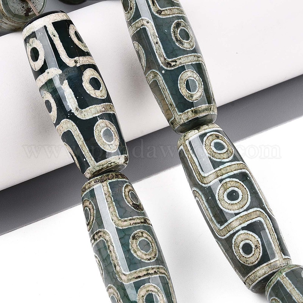 Нити бусин дзи агат в тибетском стиле, природных бисера агат, окрашенная и подогревом, баррель, темно-зеленый