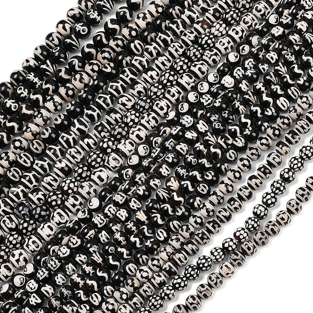 • Узор Человека Тибетского стиля DZI бисер нитей, природных бисера агат, круглые, чёрные, окрашенная и подогревом, человеческий узор, 8 мм, отверстие : 1 мм, около 47 шт / нитка, 14.84'' (37.7 см)