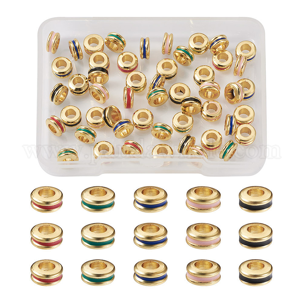 • (52) Непрозрачная лаванда 50шт 5 цвета латунь стойка покрытие, эмалевый бисер, реальный 18 k позолоченный, без кадмия и без свинца, рондель, разноцветные, 6x3 мм, отверстие : 3 мм, 10 ПК / цветов