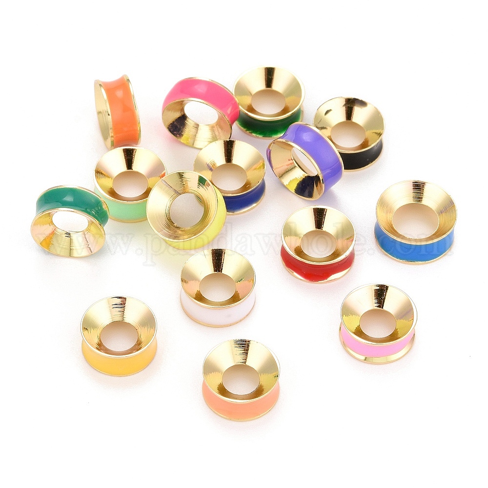 Желобчатые латунные эмалевые бусины, реальный 18 k позолоченный, кольцо