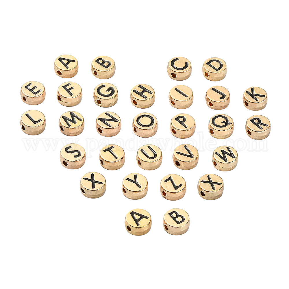 Бусины из эмали из сплава светлого золота, плоско-круглые с алфавитами