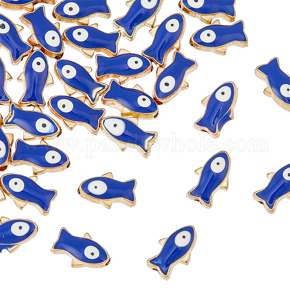 Легкие позолоченные эмалевые бусины из сплава, рыба
