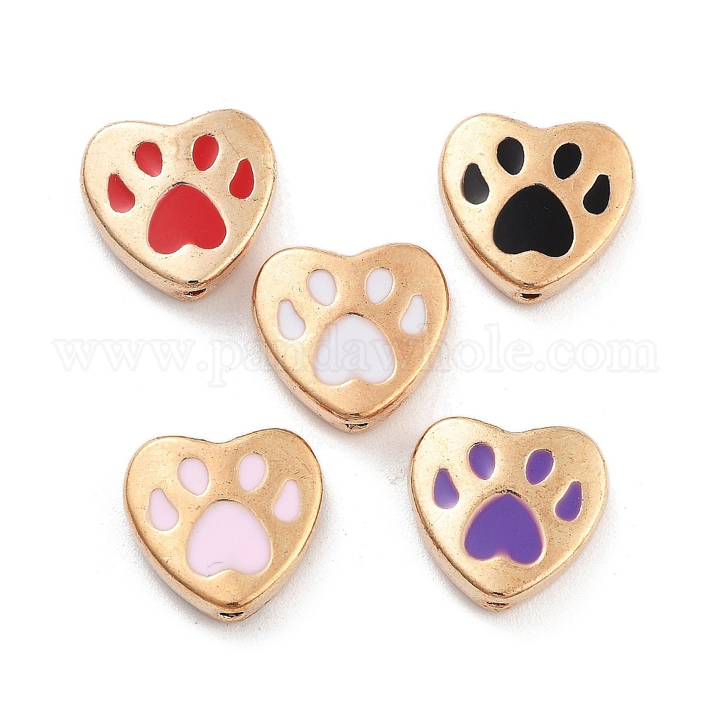 Бисера эмали сплава, сердце с отпечатком лапы, золотые