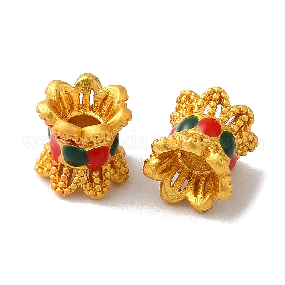 • Матовый Золотой Цвет Долговечные латунные бусины, с эмалью, цветок, матовый золотой цвет, 6.6x6.6 мм, отверстие : 2~4 мм