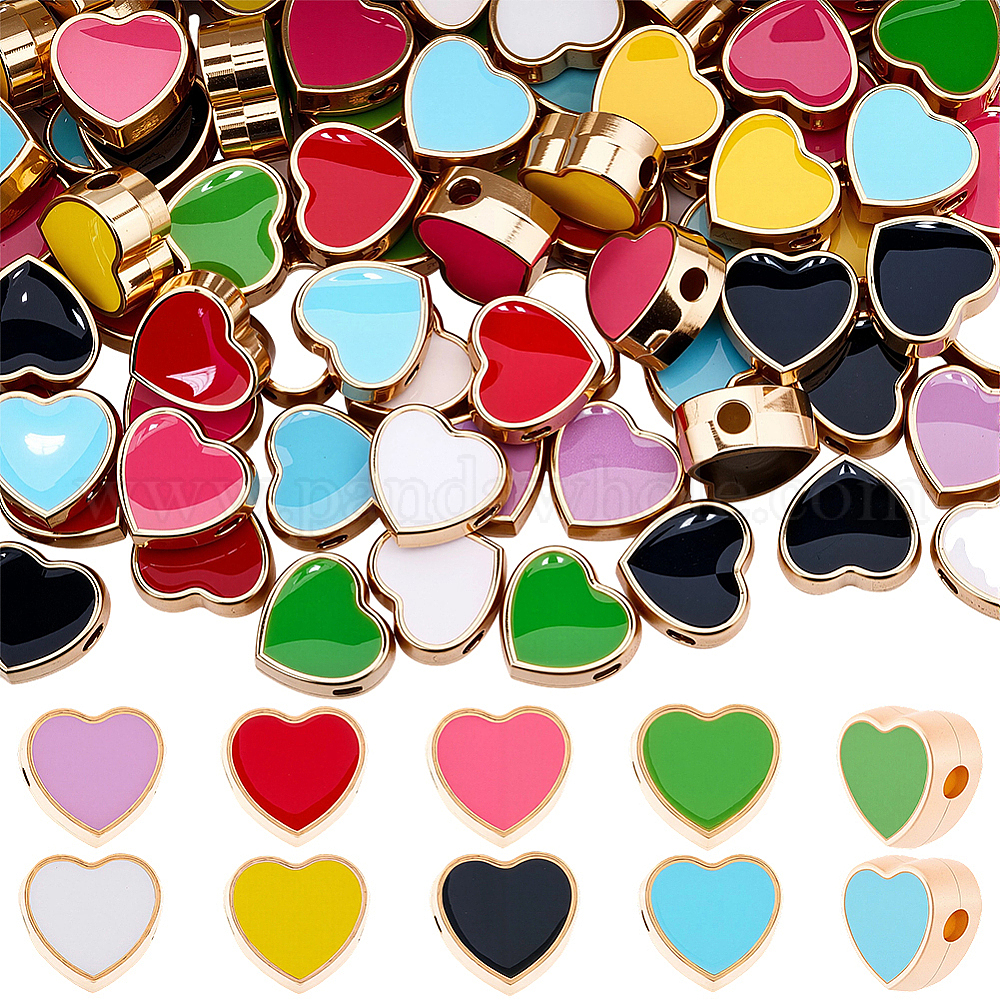 96 шт 8 цвета сплава эмалевые бусины, золотые, сердце