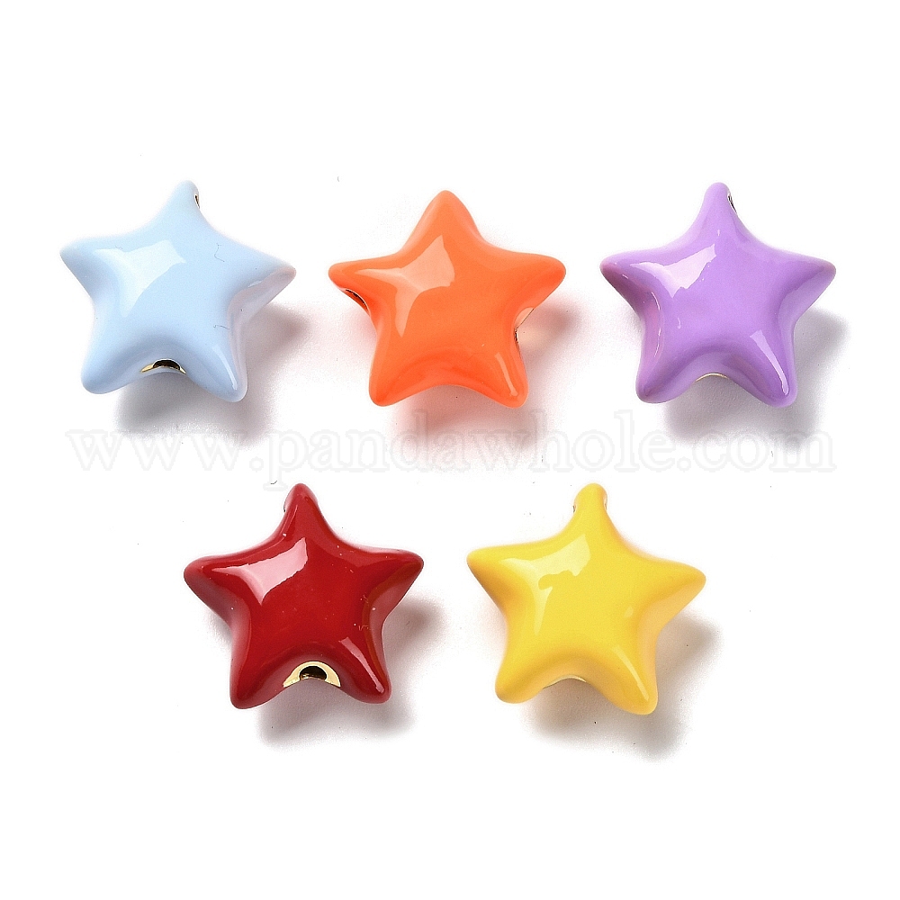 Звездные латунные эмалевые бусины, долговечный, без кадмия и без свинца, стойки покрытие, реальный 18 k позолоченный
