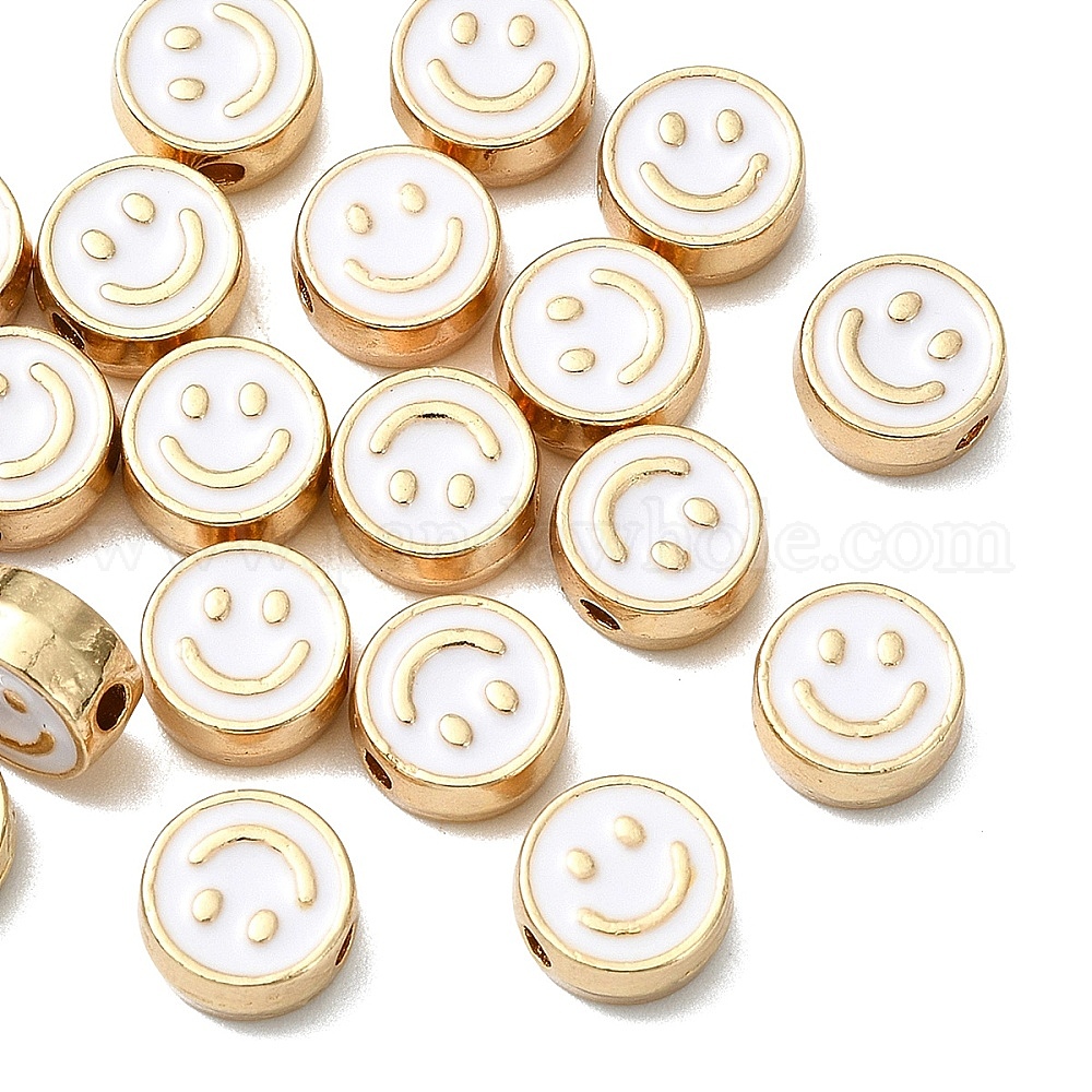 20 Шарики из сплава эмали шт., золотые, плоские круглые с улыбающееся лицо