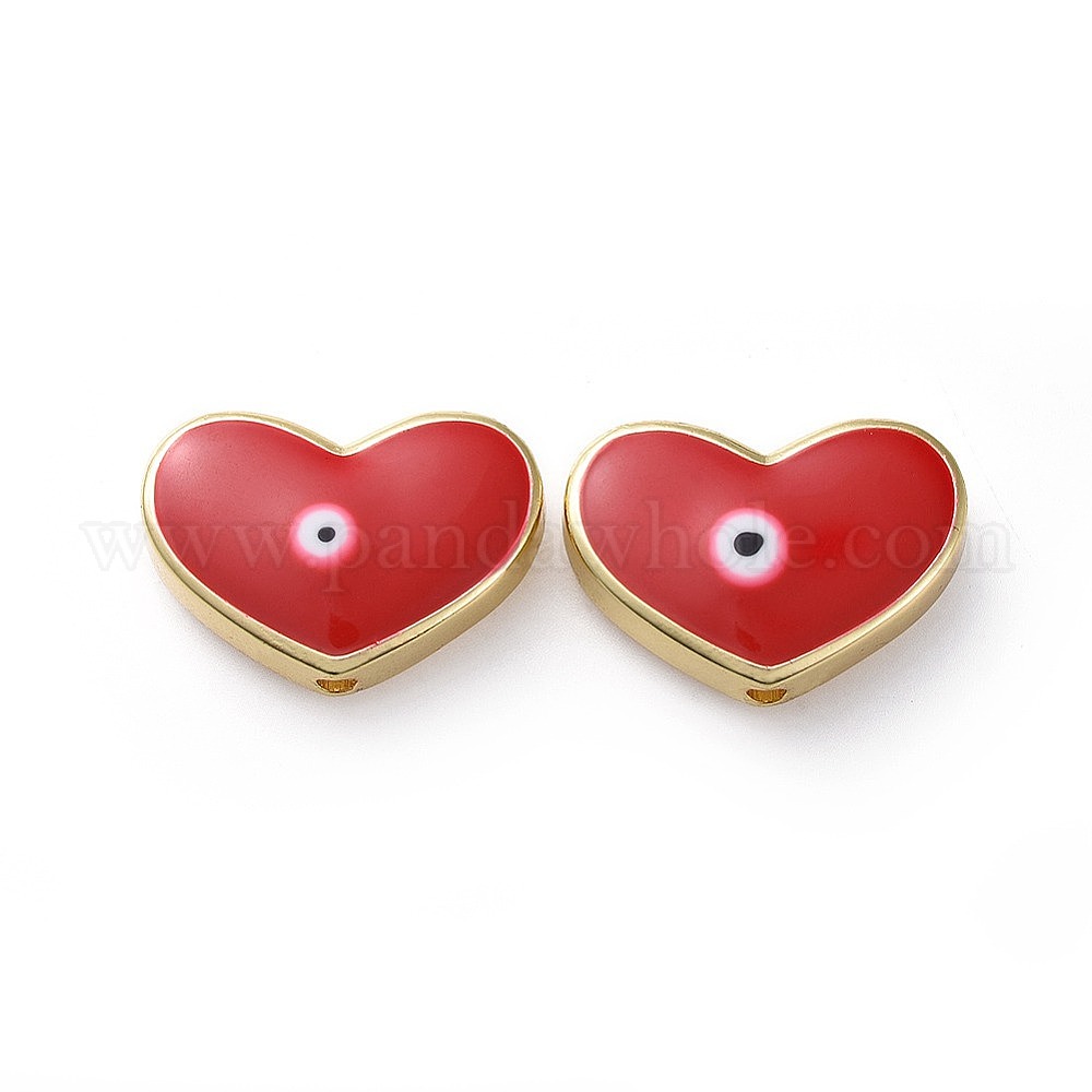 Латунные бусины золотого тона, с эмалью, сердце с сглаза