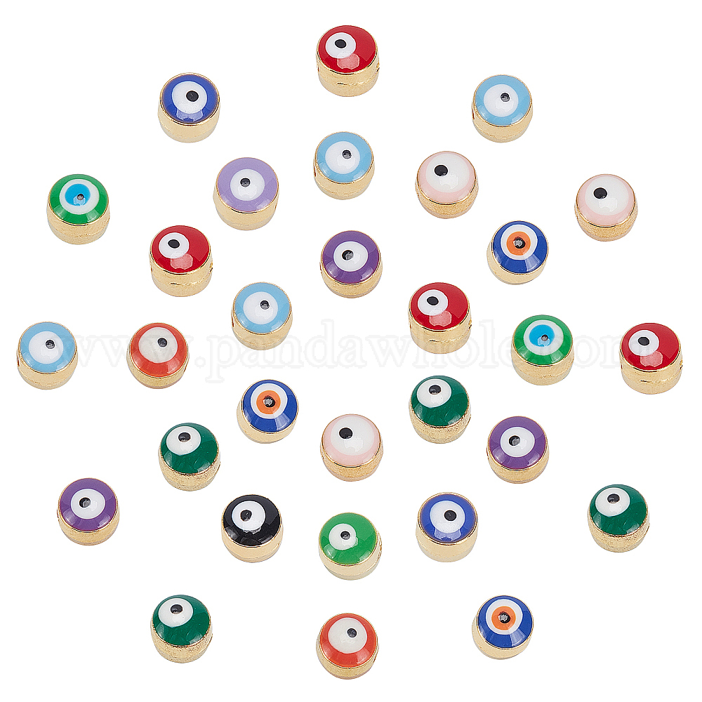 бусины от сглаза: около 5.5 мм в диаметре, толщиной 5.5~7 мм , отверстие : 1 мм, 12 цветов, 15 шт / цвет, 180 шт / коробка;