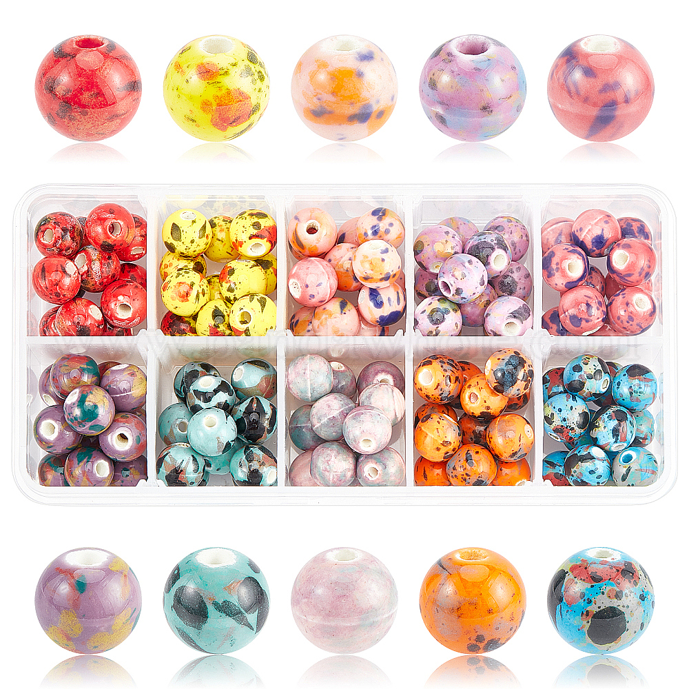 120шт 10 цвета фарфоровые бусины ручной работы, фантазии античного стекла фарфора, круглые