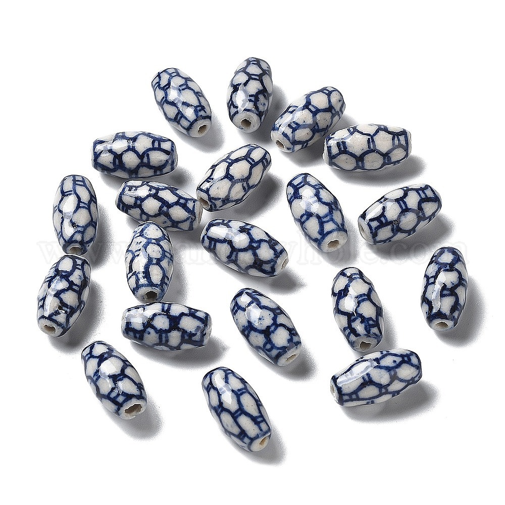 Фарфоровые бусины ручной работы, белый и голубой фарфор, баррель