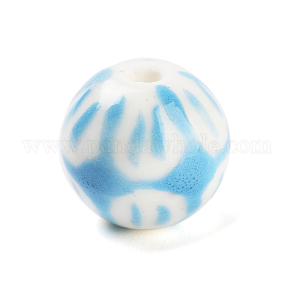 Фарфоровые бусины ручной работы, Famille выросли стиле, круглая с цветком