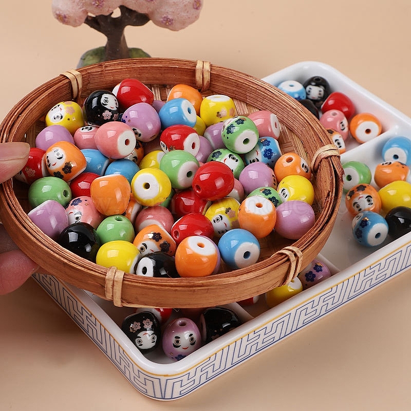 Фарфоровые бусины ручной работы, яркие остекление, овальные, дхарма