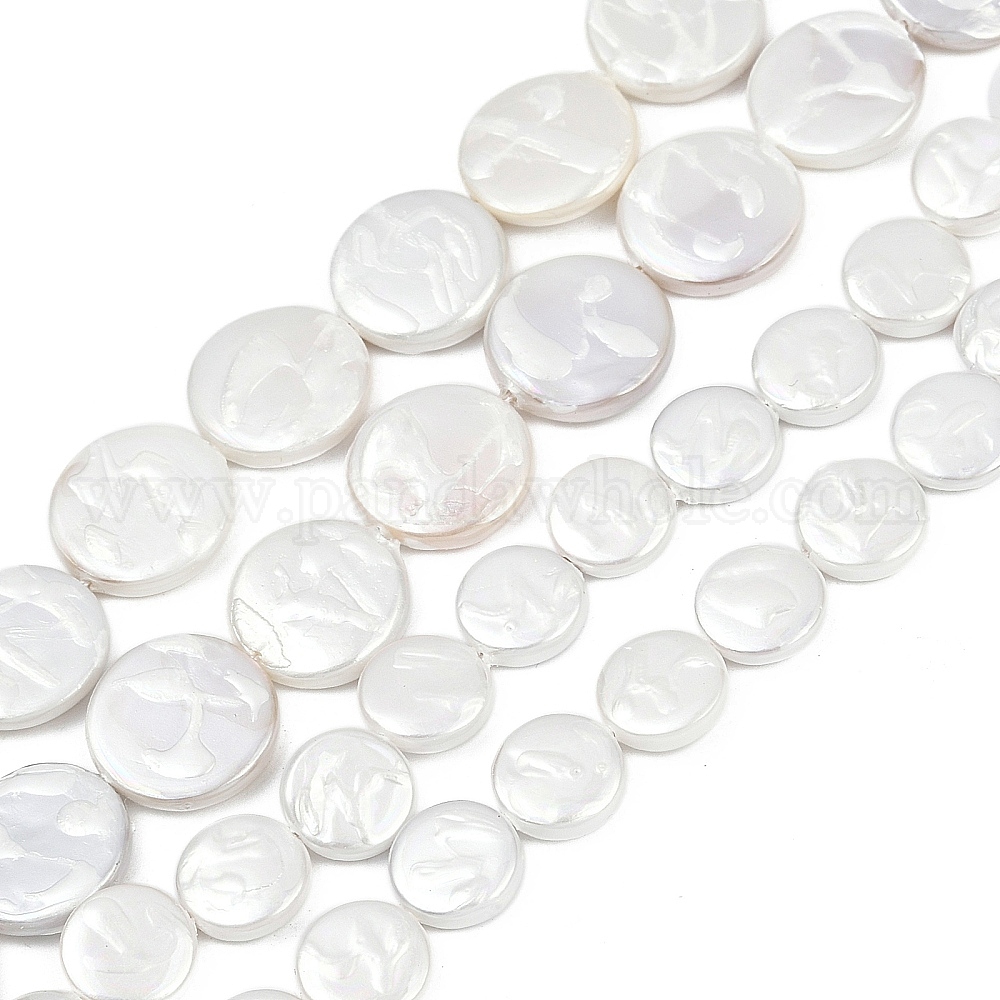 Нити бусин из искусственного жемчуга с гальваническим покрытием из фарфора, плоско-круглые