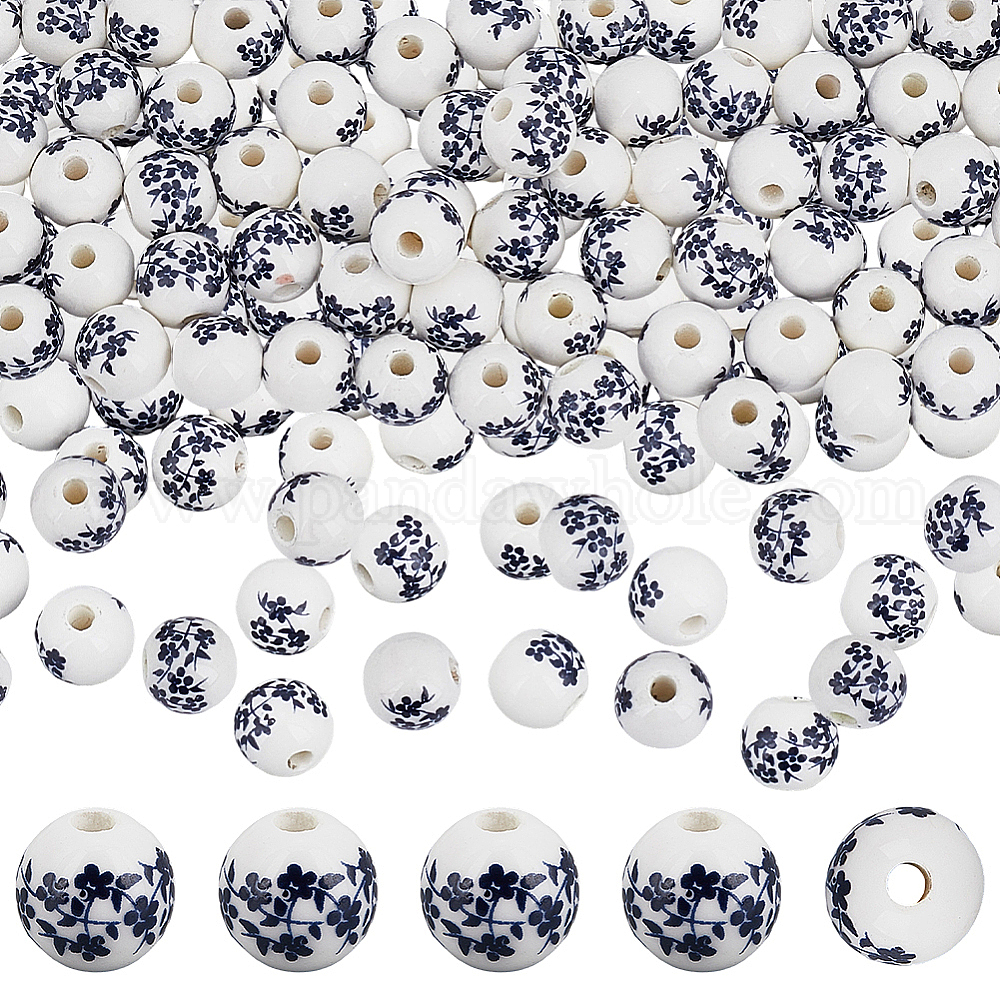 90шт. фарфоровые бусины ручной работы с принтом, круглые