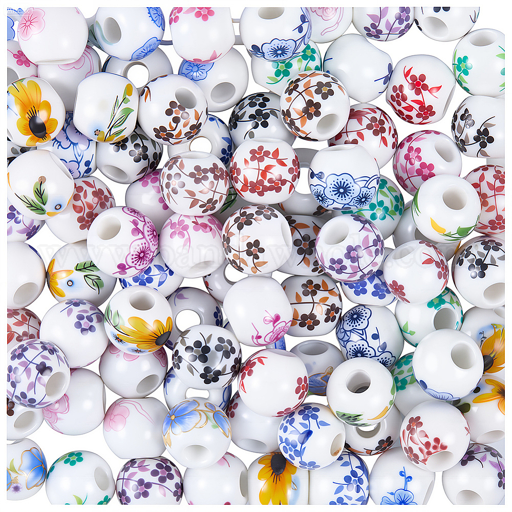 120шт. печатные фарфоровые бусины, круглые с цветочным узором