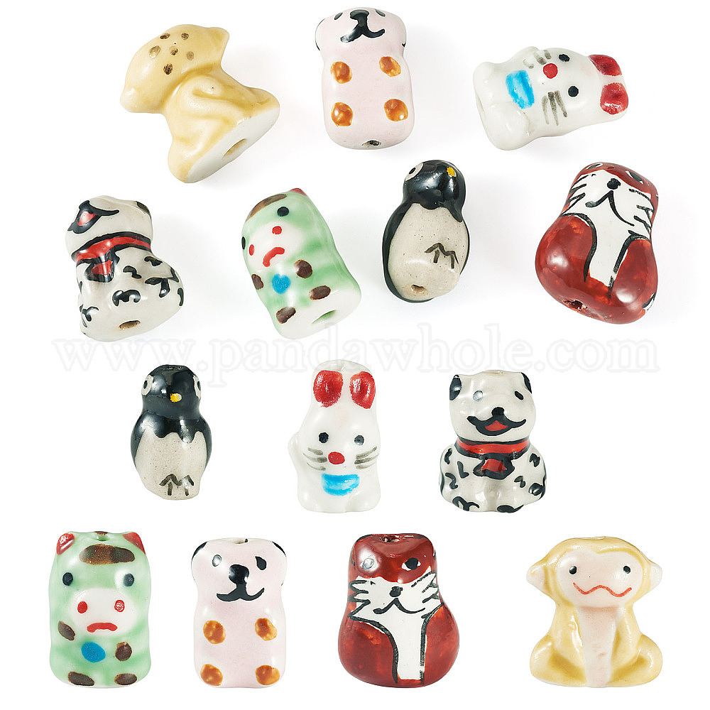 7шт 7 стили фарфоровые бусины ручной работы, животные