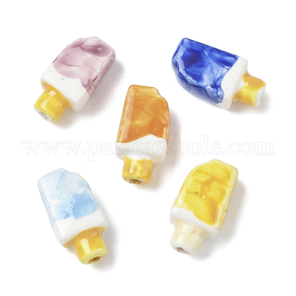 • Оранжевый Фарфоровые бусины ручной работы, пастельный фарфор, мороженое, оранжевые, 15.5x8x6 мм, отверстие : 1.8 мм