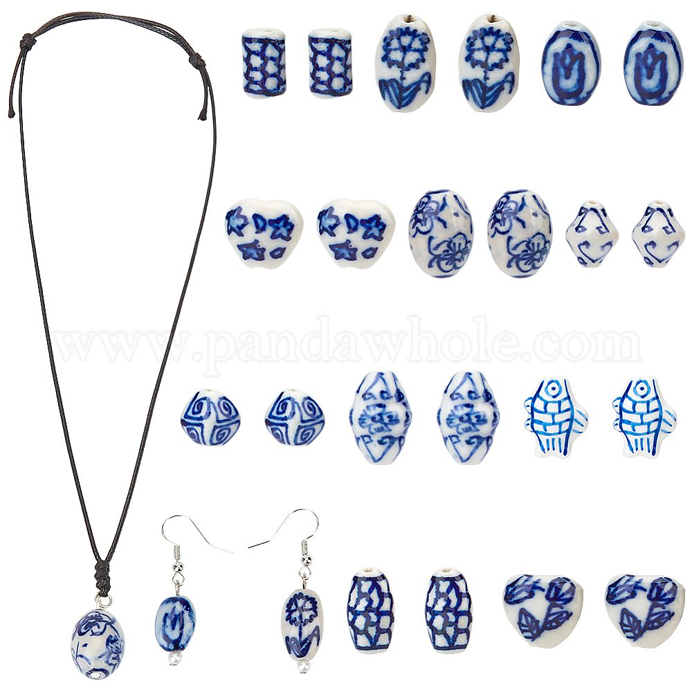 22шт. 11 стили, нити из сине-белого фарфора ручной работы (037KCA)