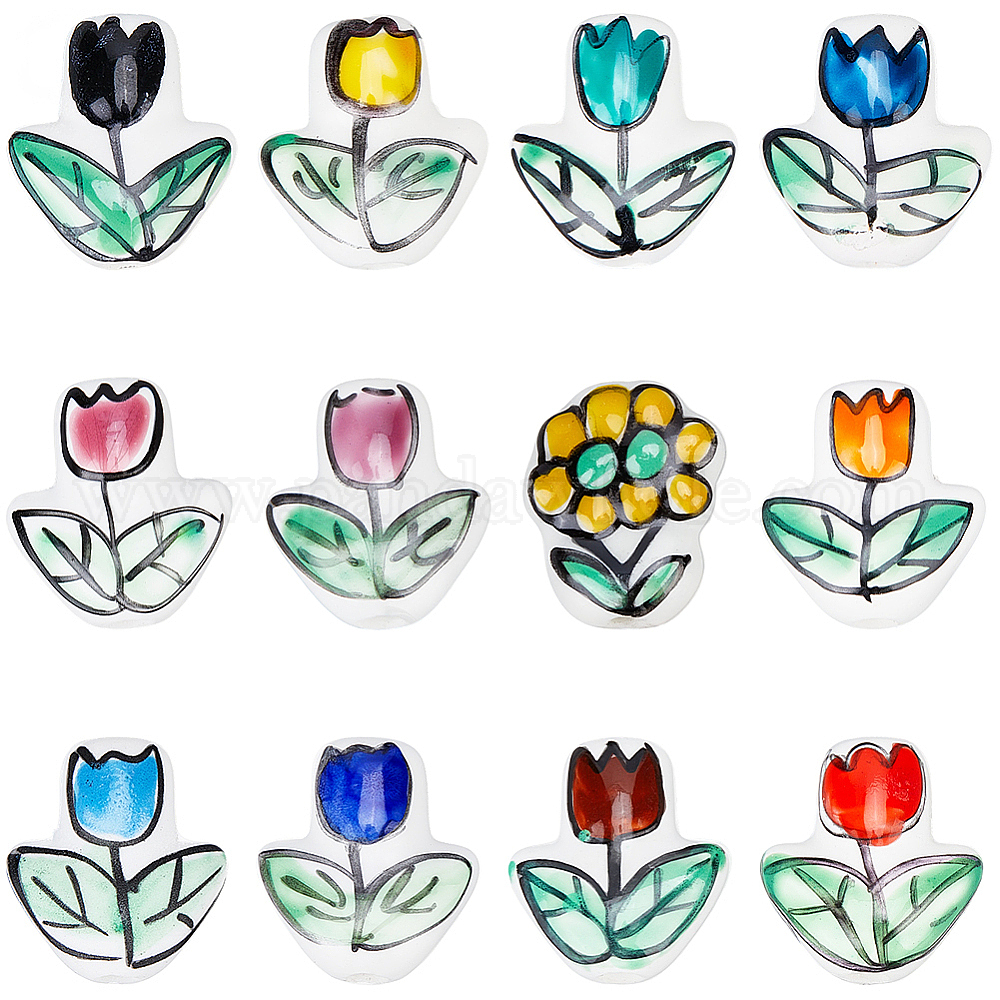 24шт. 12 цвета, фарфор ручной работы, яркие глазурованные бусины, цветок