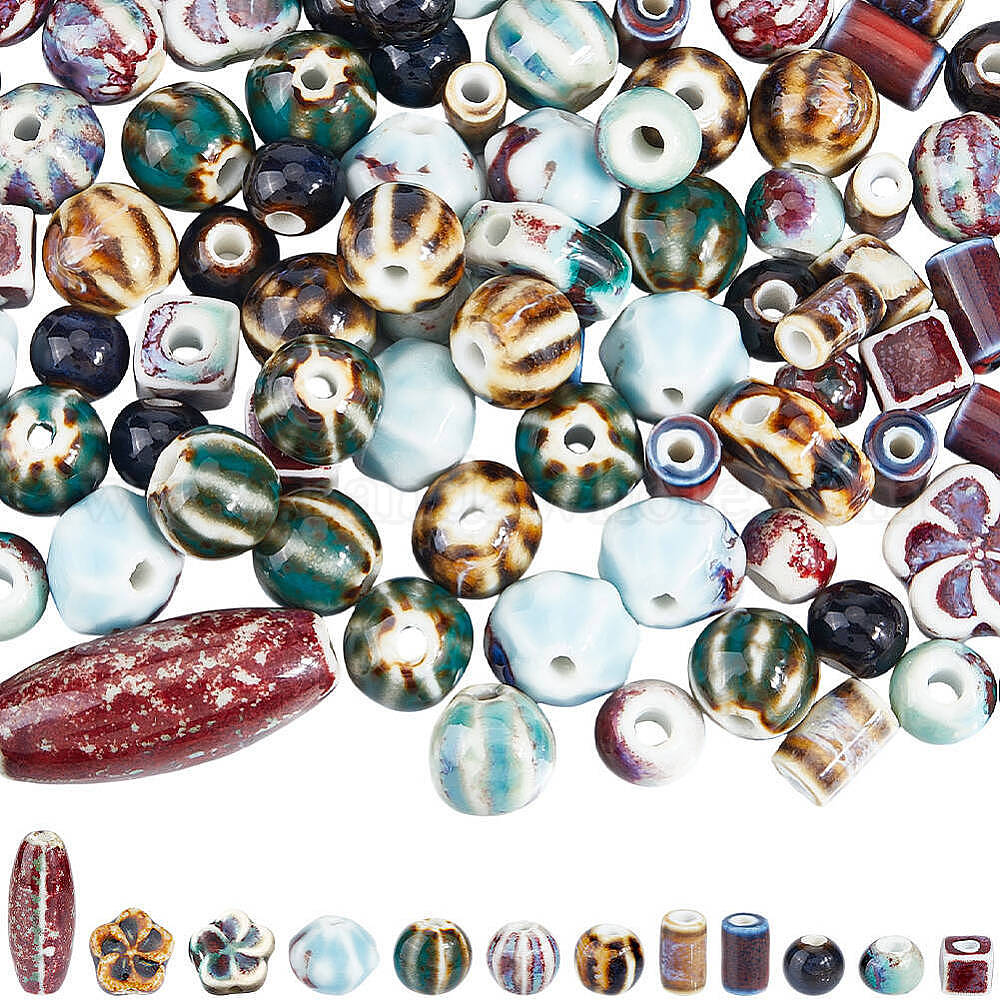 120шт 12 стили фарфоровые бусины ручной работы, фантазии античного стекла фарфора, разнообразные