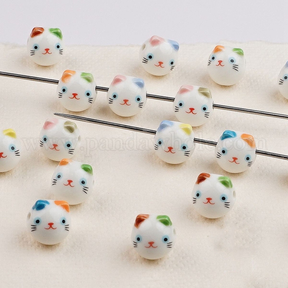 Печатные фарфоровые керамические бусины ручной работы, форма кошки
