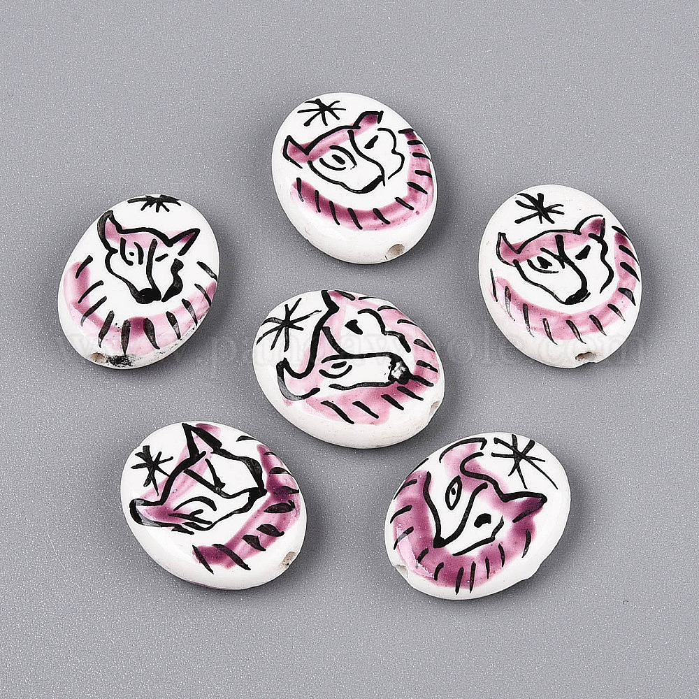 Фарфоровые бусины ручной работы, пастельный фарфор, овал и лиса