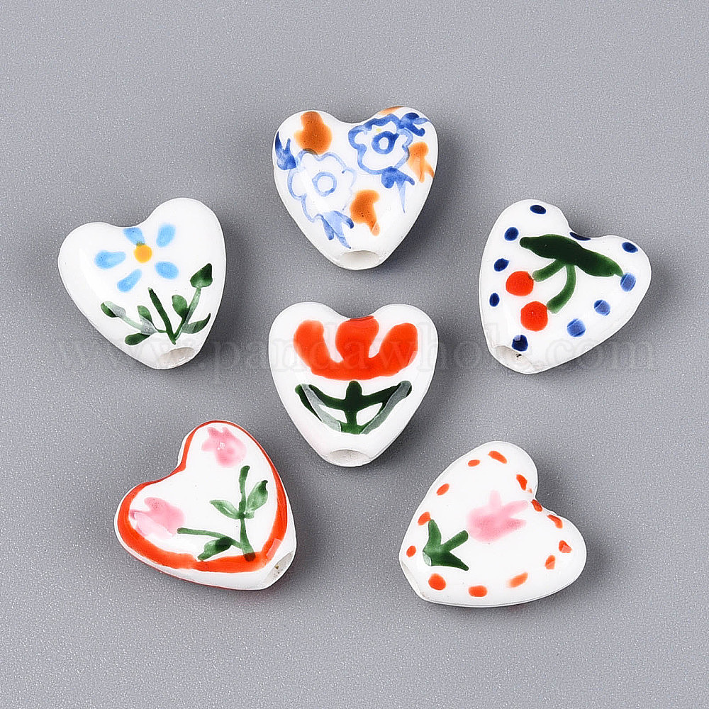 Ручной фарфоровые керамические шарики, сердце с цветочным узором, Famille выросли стиле