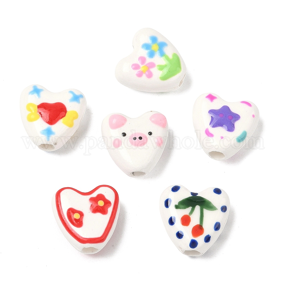Фарфоровые эмалевые бусины ручной работы, пастельный фарфор, формы сердца