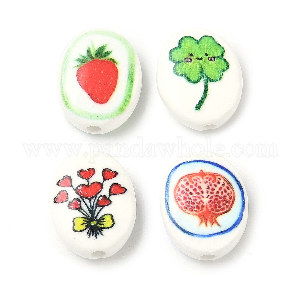 Фарфоровые бусины ручной работы, овальные, напечатанный