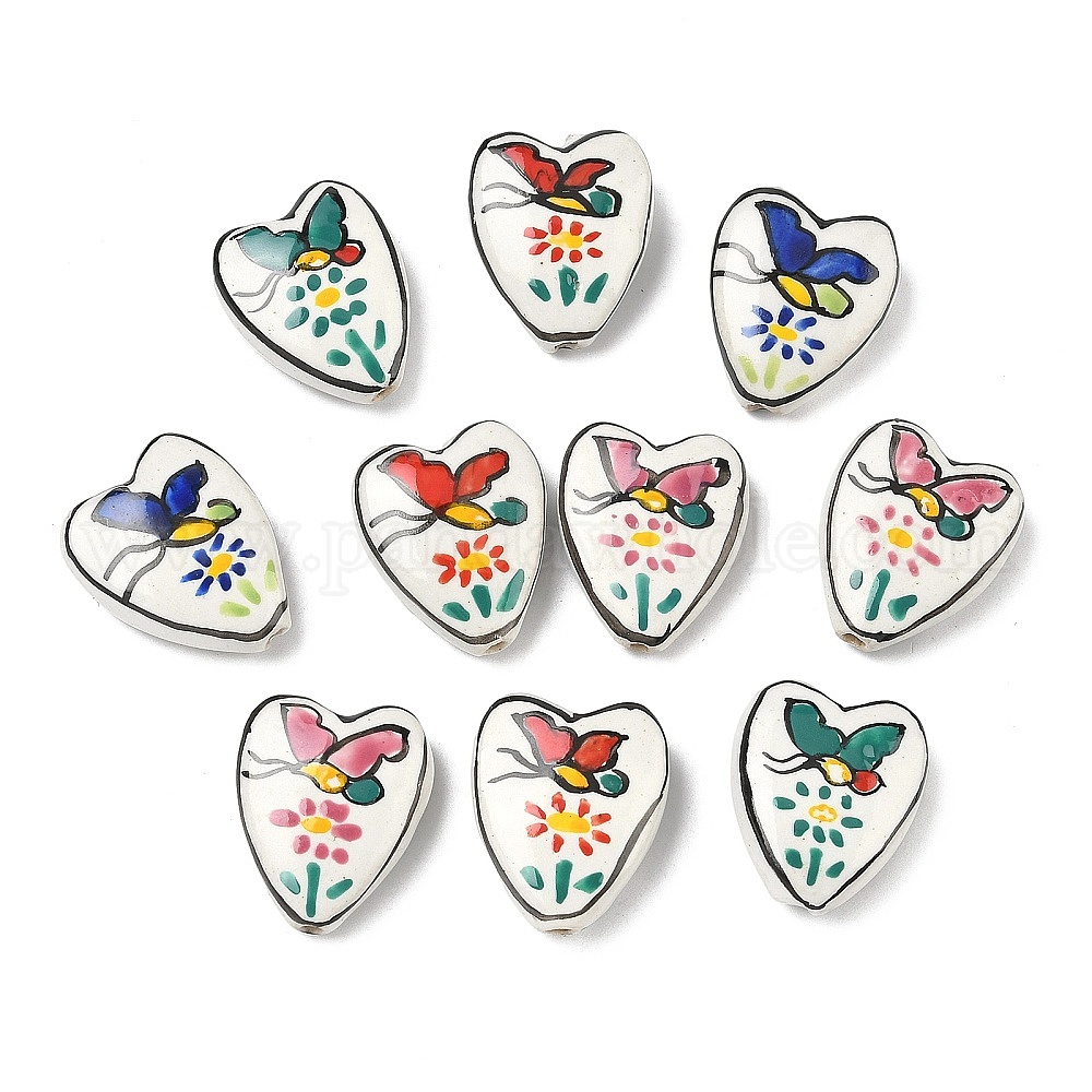 Фарфоровые бусины ручной работы, Сердце с подвесками в виде бабочки и цветка., пастельный фарфор