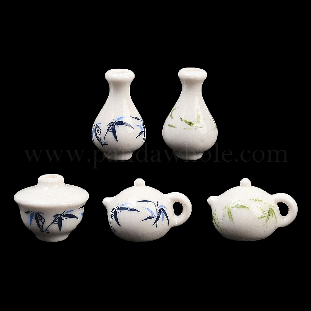 • Vase Ручной печатный шарики фарфора, лист, белый и голубой фарфор, ваза, 18x11 мм, отверстие : 2 мм