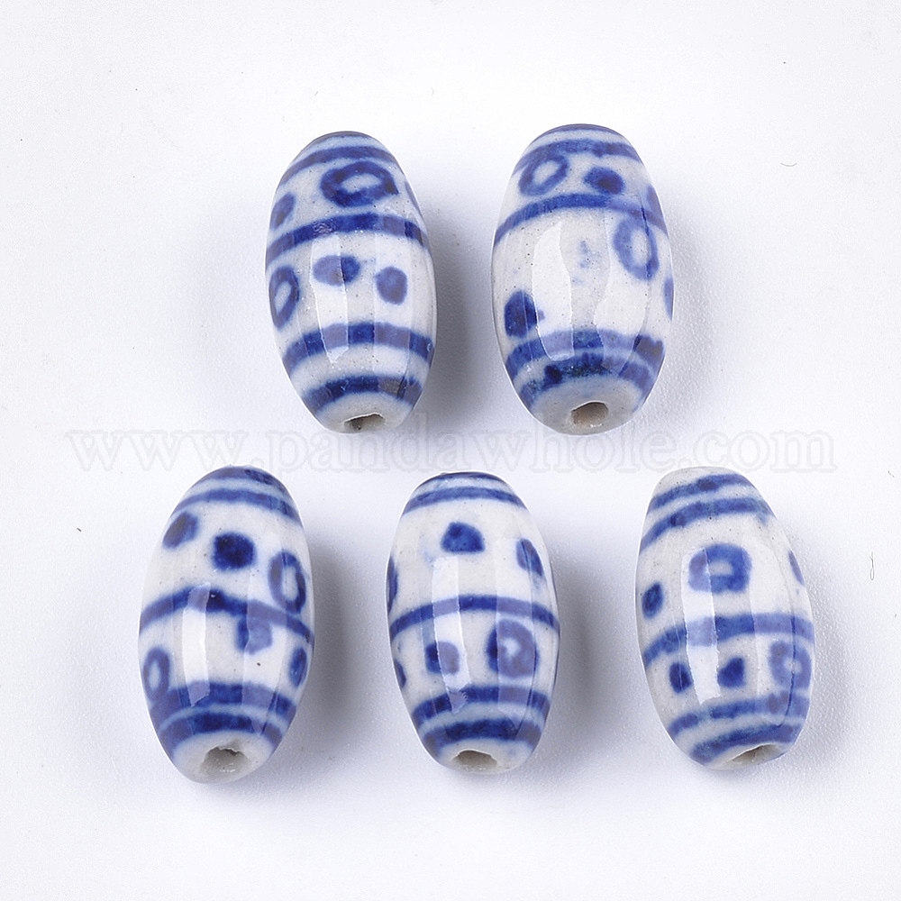 Фарфоровые бусины ручной работы, белый и голубой фарфор, овальные