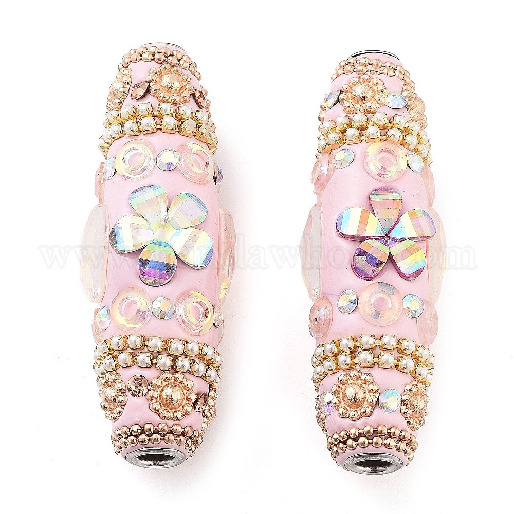 Индонезийские бусины ручной работы, с железом, абс пластмасса, смола и стекло, длинный овал с цветком