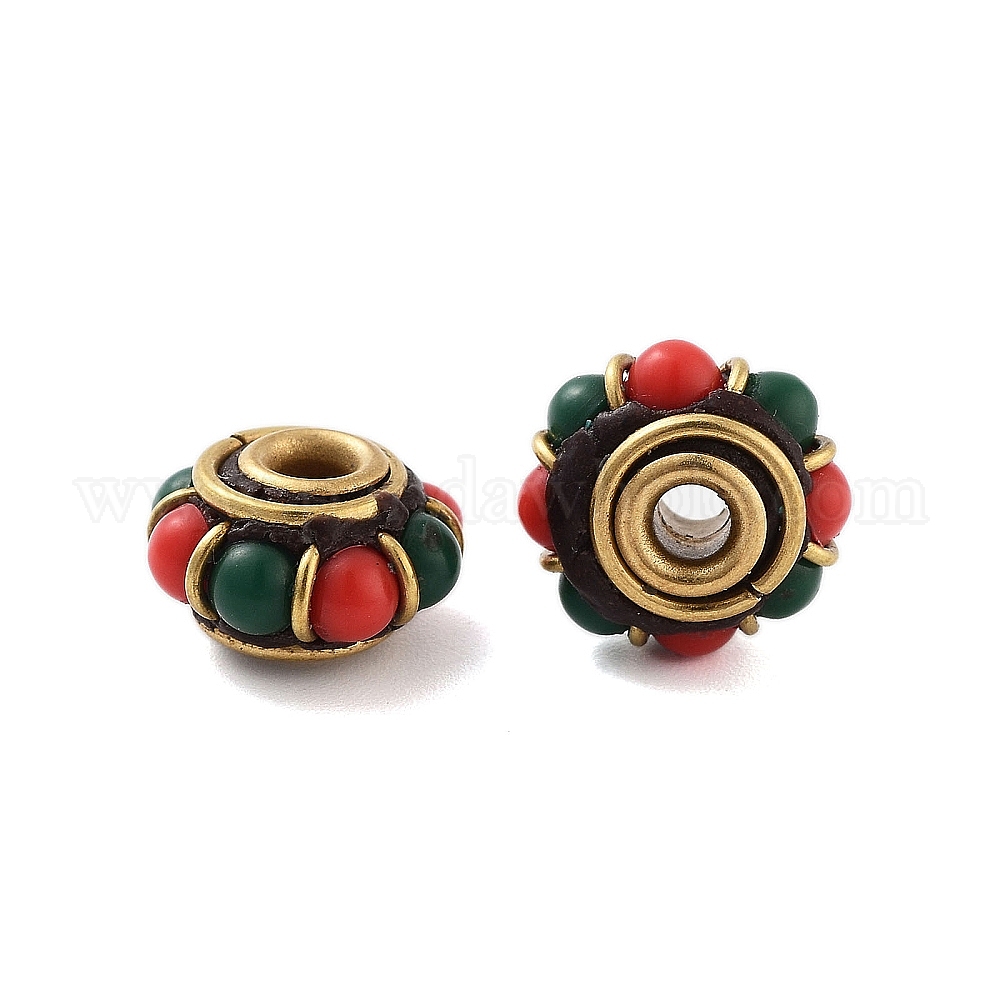Индонезийские бусины ручной работы, латуни и смолы, рондель
