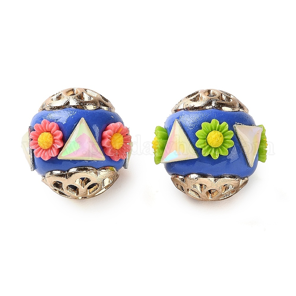 Ручная полимерная глиняная индонезия бисер, круг с цветком и треугольником, с сердечником из сплава и смолы, золотой свет