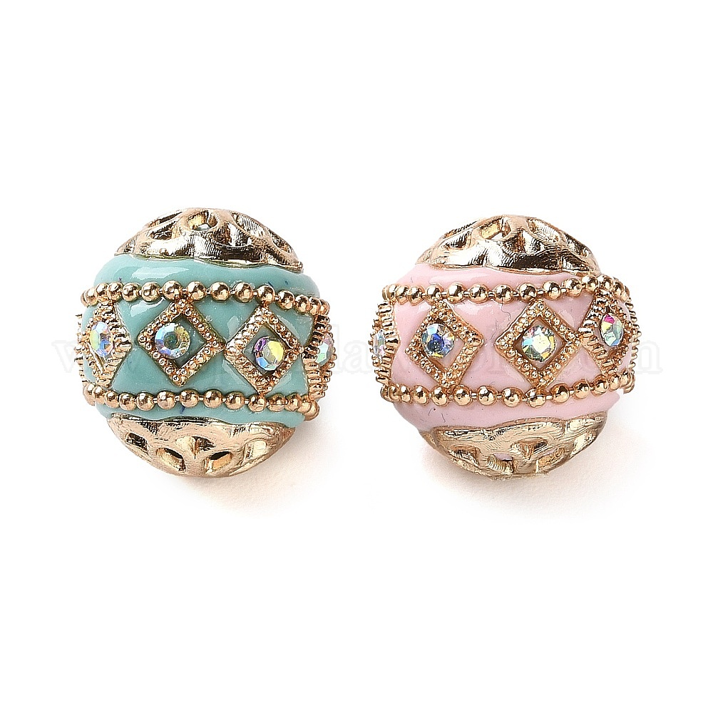 Ручная полимерная глиняная индонезия бисер, круглый узор с ромбами, с сердечником из сплава и смоляными стразами, золотой свет