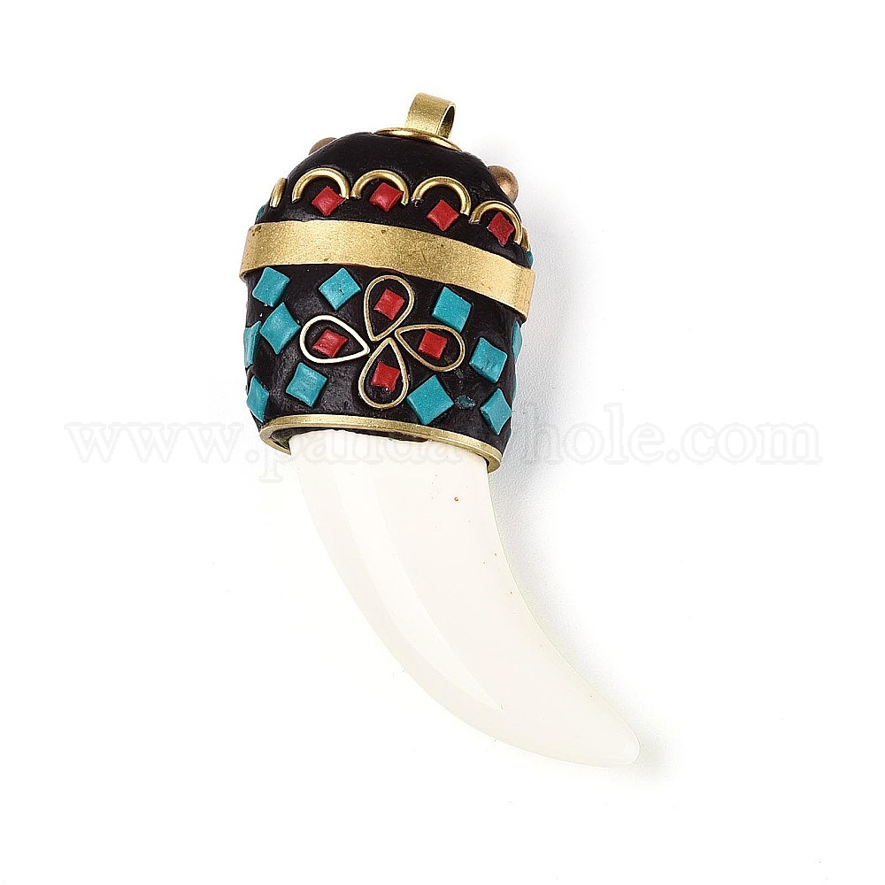 Большие подвески из Индонезии, подвески в форме бивня, со смолой и непокрытой латунью