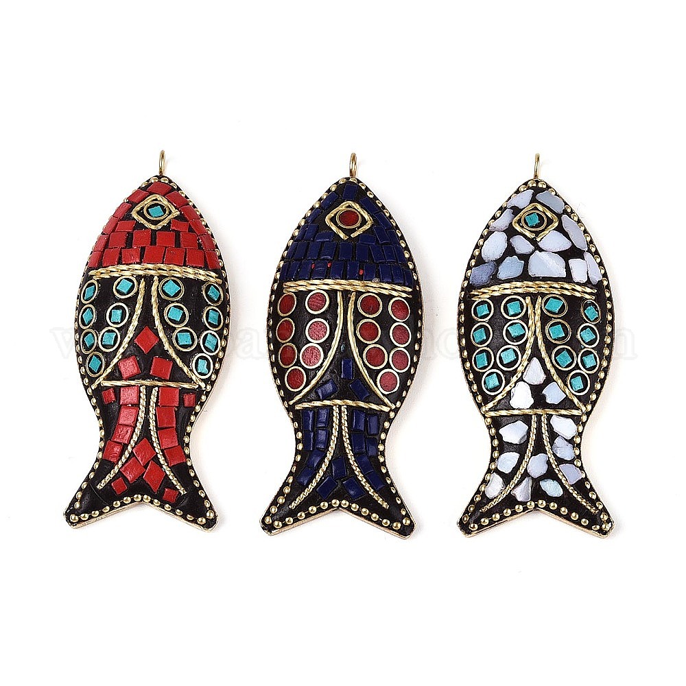 Большие подвески из Индонезии, рыбы прелести, со смолой и непокрытой латунью и оболочкой