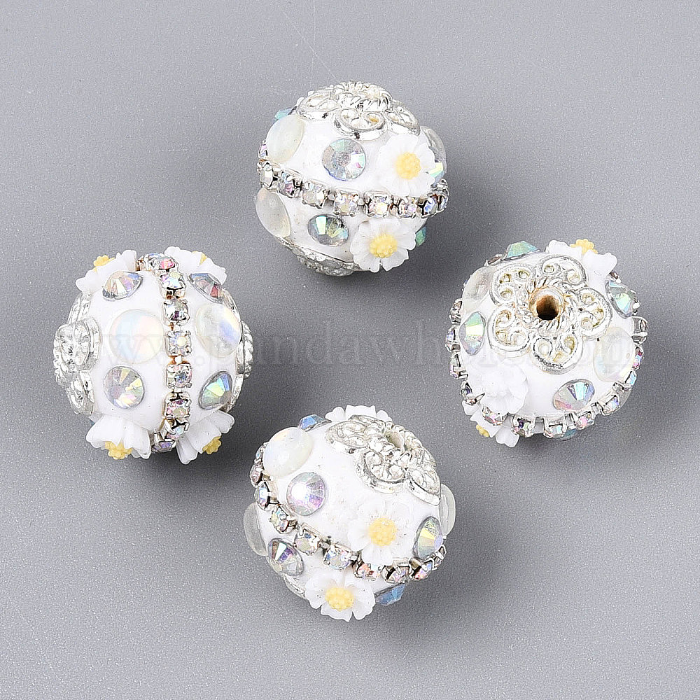 Полимерные глины из горного хрусталя из Индонезии, круглый и цветочный, бусины из смолы, сплава и акрила со стразами
