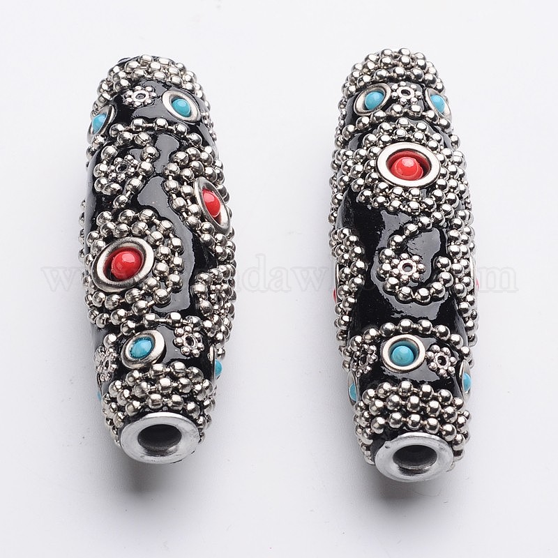 Овальные бусины индонезийского стиля, с алюминиевыми жилами металл платиновой группы цветных, 60x17 мм, отверстие : 4 мм