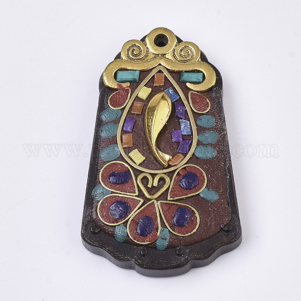 Будда тема ручной работы Индонезия большие подвески, со сплавочной фурнитурой, сандал и смола, рыба, трапециевидные
