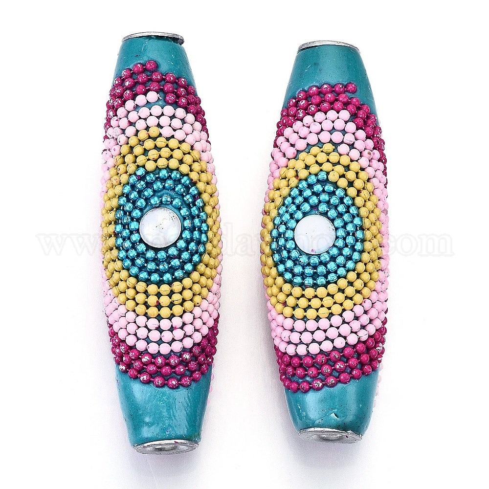 • Темно-бирюзовый Рисовые шарики ручной Индонезия, с алюминиевым сердечником цвета платиновый металл и металлической фурнитурой, алюминиевые сердечники, темные бирюзовый, 58x18 мм, отверстие : 4 мм