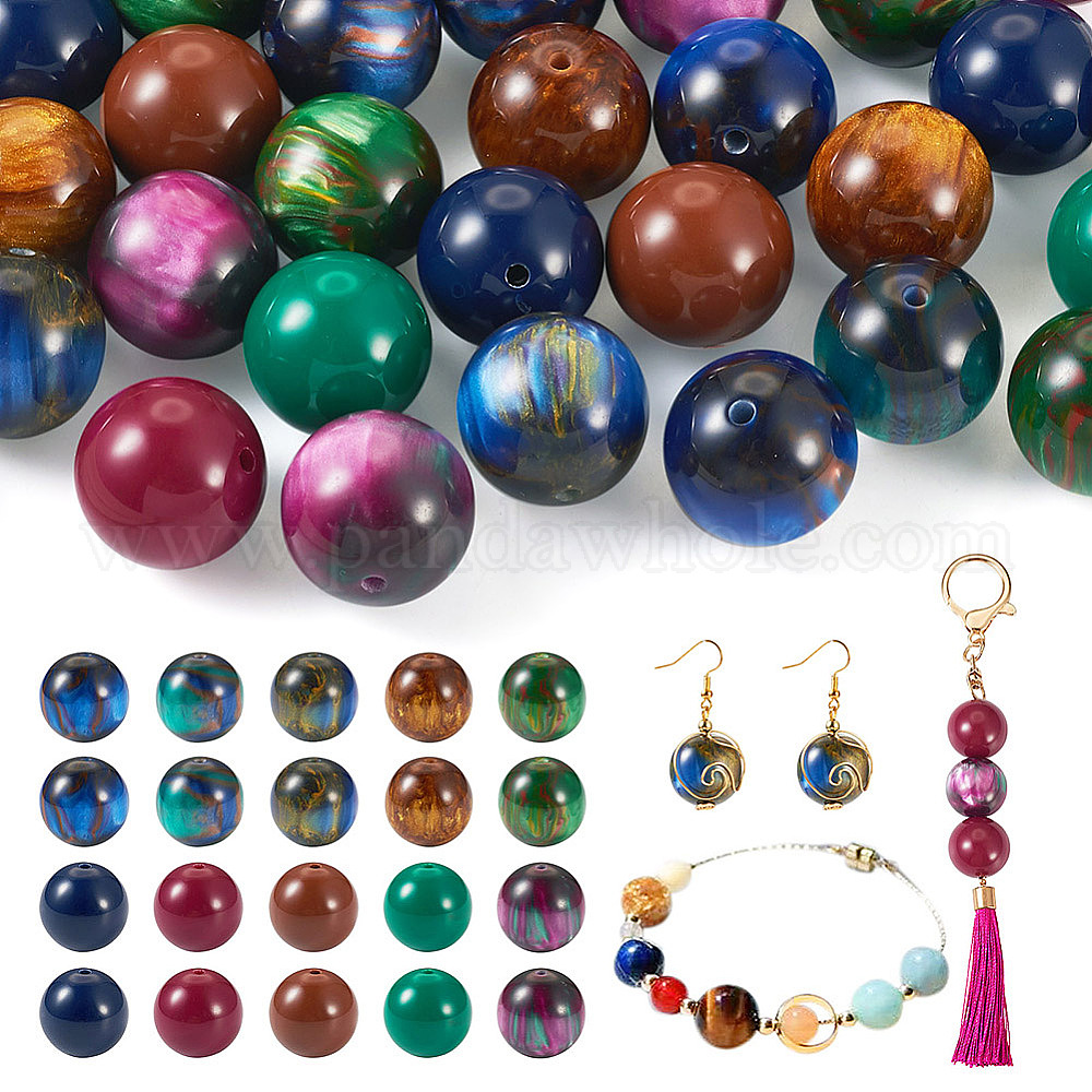 50шт 10 стили непрозрачные смоляные бусины, жемчужные, круглые