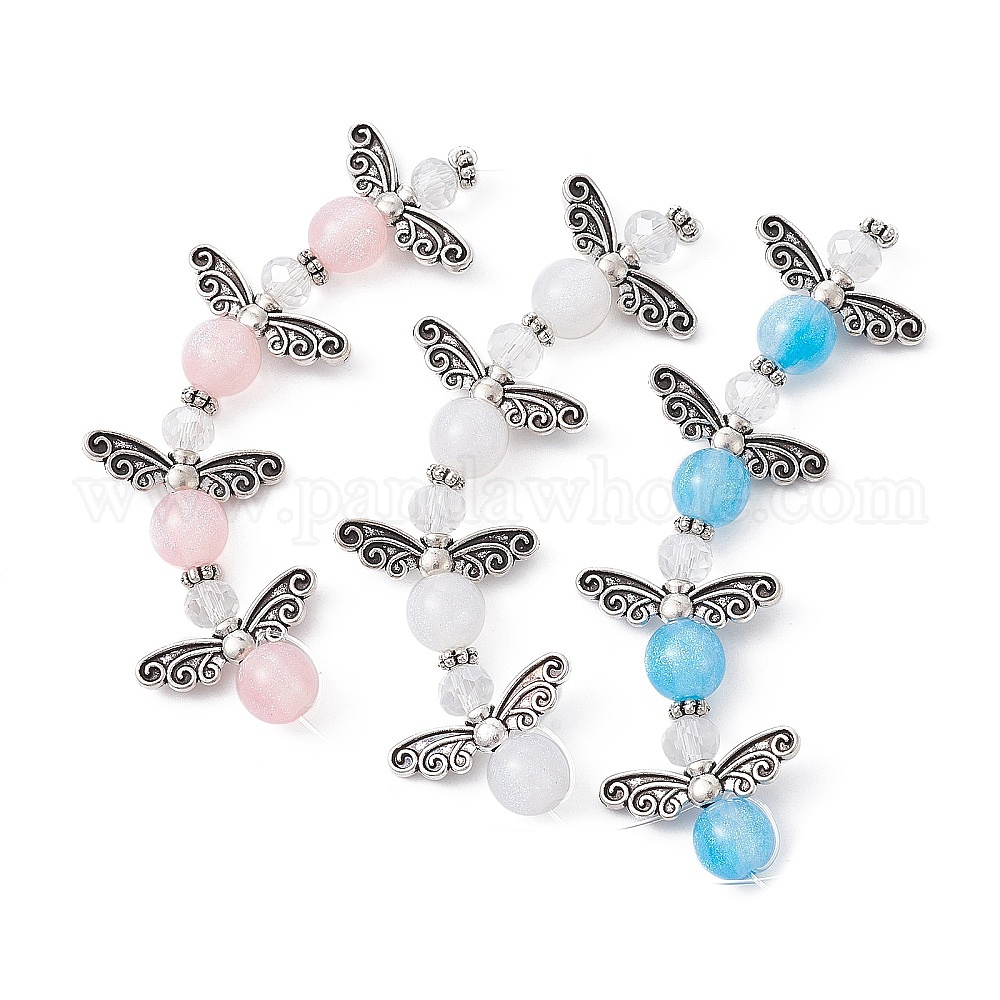 • (52) Непрозрачная лаванда 3 нити 3 цвета набор ниток из смолы своими руками, с античными посеребренными крыльями из сплава, ангел, разноцветные, 18x18x8 мм, отверстие : 0.7 мм, около 4 шт / нитка, 2.76'' (7 см), о 1 нити/цвет