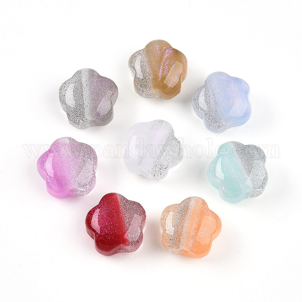 Двухцветные прозрачные смоляные бусины, цветка сливы, с блеском порошок