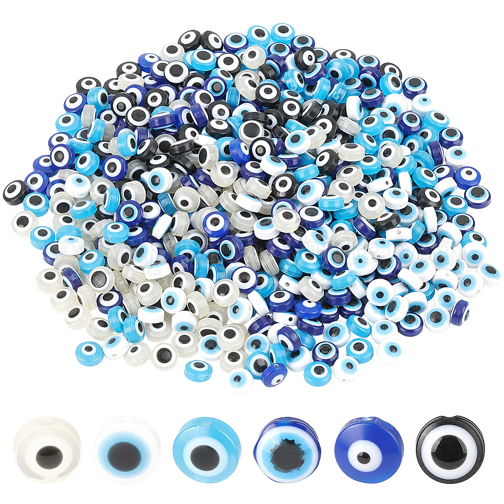 600 шт 6 цвета полимерных бусин, плоско-круглые, злые глаза